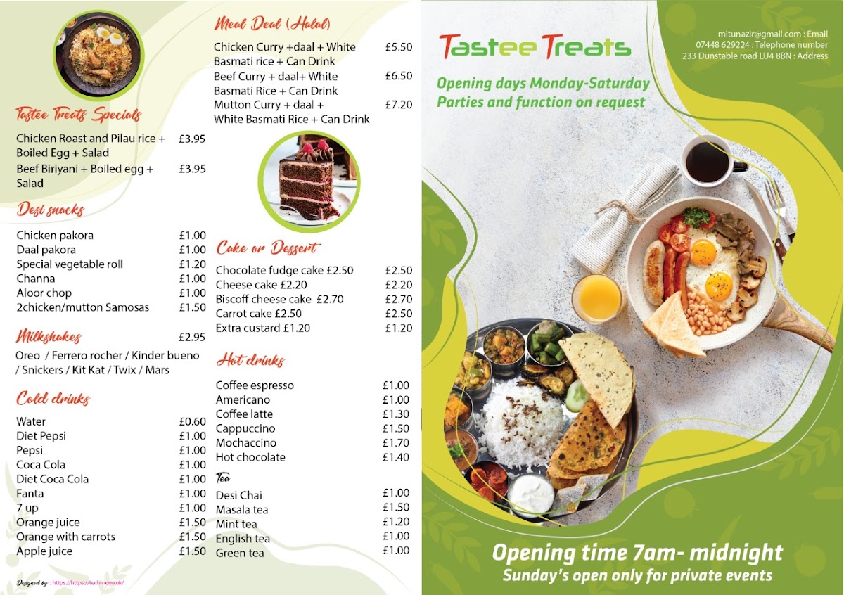 Introducing the menu at Tastee Treats, a charming café located on 233 Dunstable Rd, Luton, is nothing short of delightful. This establishment stands out for its inviting atmosphere complemented by the rich aroma of freshly brewed coffee. Breakfast enthusiasts can indulge in options like the delectable Cheese Flan, hearty Lasagna, and a robust Full Breakfast that promises satisfaction with every bite.